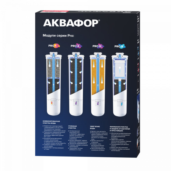 Модуль Pro H рассчитан на воду малой или средней жесткости (до 5 мг-экв/л) и требует регенерации соляным раствором, при высокой жесткости — раз в 2-3 недели.