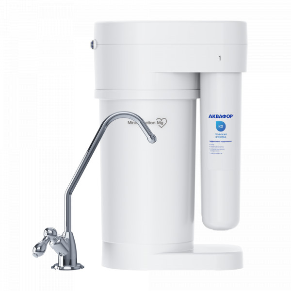 Обратноосмотические фильтры используются для абсолютной защиты от накипи, т.к. полностью устраняют соли жесткости из воды.даЧисло ступеней очисткиКартриджи последовательно очищают воду и от видимых примесей, и от растворенных. Первый картридж задерживает более крупные частицы, а каждый последующий - более мелкие. Чем больше ступеней - тем лучше фильтр очистит воду: поймает более мелкие видимые частицы ржавчины, песка и ила, успеет захватить из воды максимум растворенных примесей - хлора, нитратов, тяжелых металлов и других.3МинерализацияПроисходит после финишной очистки воды. Необходима прежде всего в фильтре обратного осмоса, поскольку такой фильтр полностью устраняет из воды все примеси, в том числе минералы. Минералы добавляются в оптимальной концентрации - для пользы и привычного вкуса воды.даНакопительная емкостьОбычно нужна в фильтрах обратного осмоса. Глубокая фильтрация требует времени. Чтобы Вам не приходилось ждать, пока вода наберется в чайник или кастрюлю, почти во всех моделях используется накопительный бак для чистой воды или другая емкость. В стандартном фильтре обратного осмоса под мойку воды в баке достаточно для семьи из 5-6 человек.даФильтрующий модуль в комплектедаОтдельный крандаДавление в водопроводе не менее, атм2,0Давление в водопроводе не более, атмМаксимальное давление воды на входе в систему, при котором возможна стабильная работа фильтра.6,5Материал корпусаПищевой пластик: Допущен к контакту с пищевыми продуктами. Нержавеющая сталь: Долговечный и безопасный корпус из нержавеющей пищевой стали.пищевой пластикУдобно менять модулидаМаксимальный шум при работе DWM, дБА59